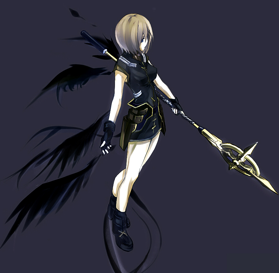 confeito000 333, banchostingmon, digimon, highres, 1boy, arm blade, black coat, black pants, blue eyes, bug, coat, digimon (creature), full body, grey hair, male focus, medium hair, pants, solo, spikes, weapon