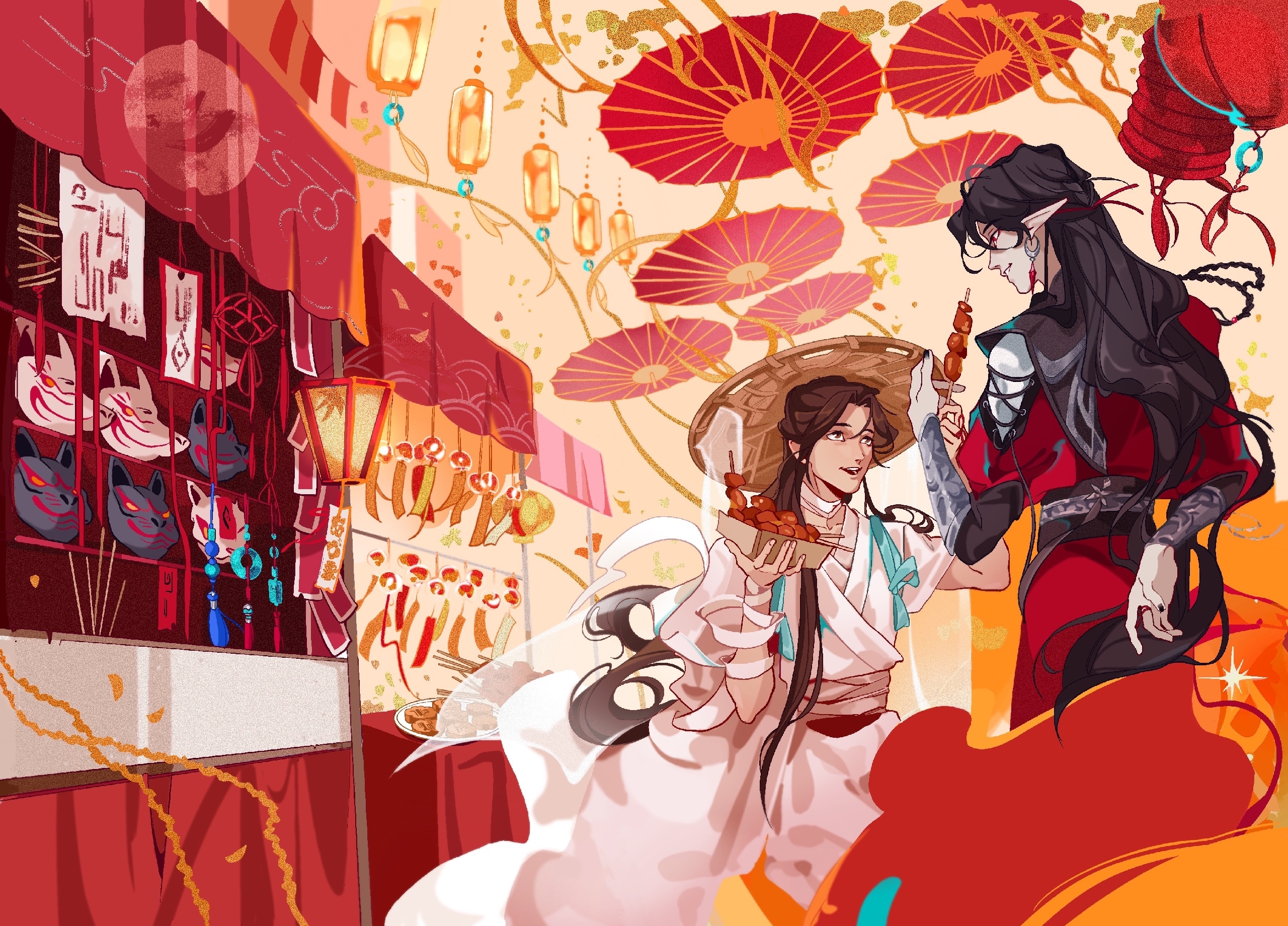 2boysaqua sasharm behind backbandaged armbandaged neckbandagesbeadsbeltblack hairblack maskblack nailsbracerbraidbrown eyesbrown hairchinese clothescross-laced clothescross-laced sleevesearringseye contactfeedingfoodfox maskhair beadshair ornamenthanfuhatholdingholding foodholding skewerjewelrylanternlong hairlong sleeveslooking at anothermale focusmarket stallmaskmooncakemultiple boysofudaoil-paper umbrellaopen mouthpale skinpointy earsred eyesred hanfured ribbonred umbrellaribbonrice hatsashside braidsittingskewersleeves pushed upsmilestandingstring around fingerumbrellaunworn maskwavy hairwhite hanfuwhite maskwhite ribbonwind chime