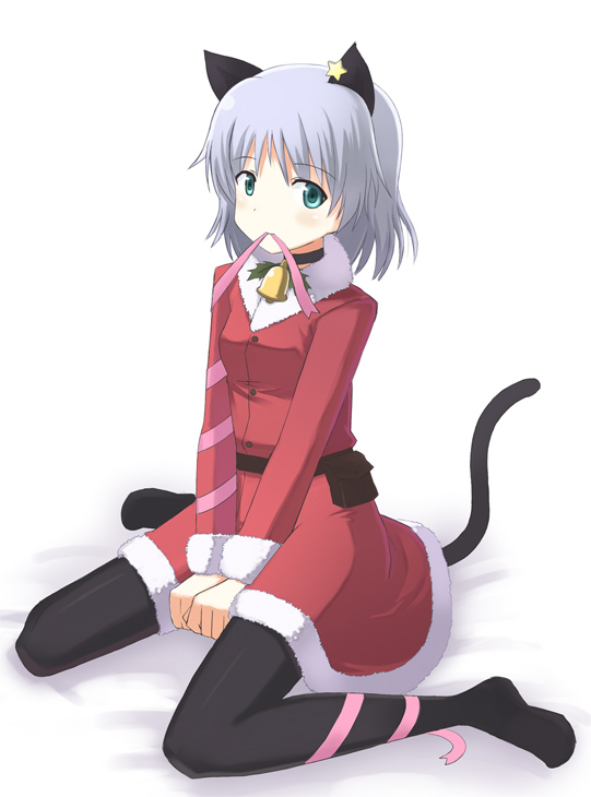 00s1girlanimal earsbellblack pantyhosecat earscat tailchristmascollardressfemale focusgreen eyesmouth holdneck bellpantyhoseribbonsanta costumeshort hairsolotail