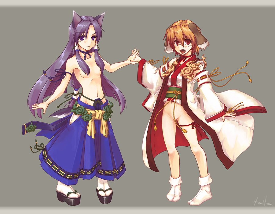 2girlsanimal earsbottomlesscensoredconvenient censoringdog earsfox earsholding handsjapanese clothesmultiple girlstabitopless female