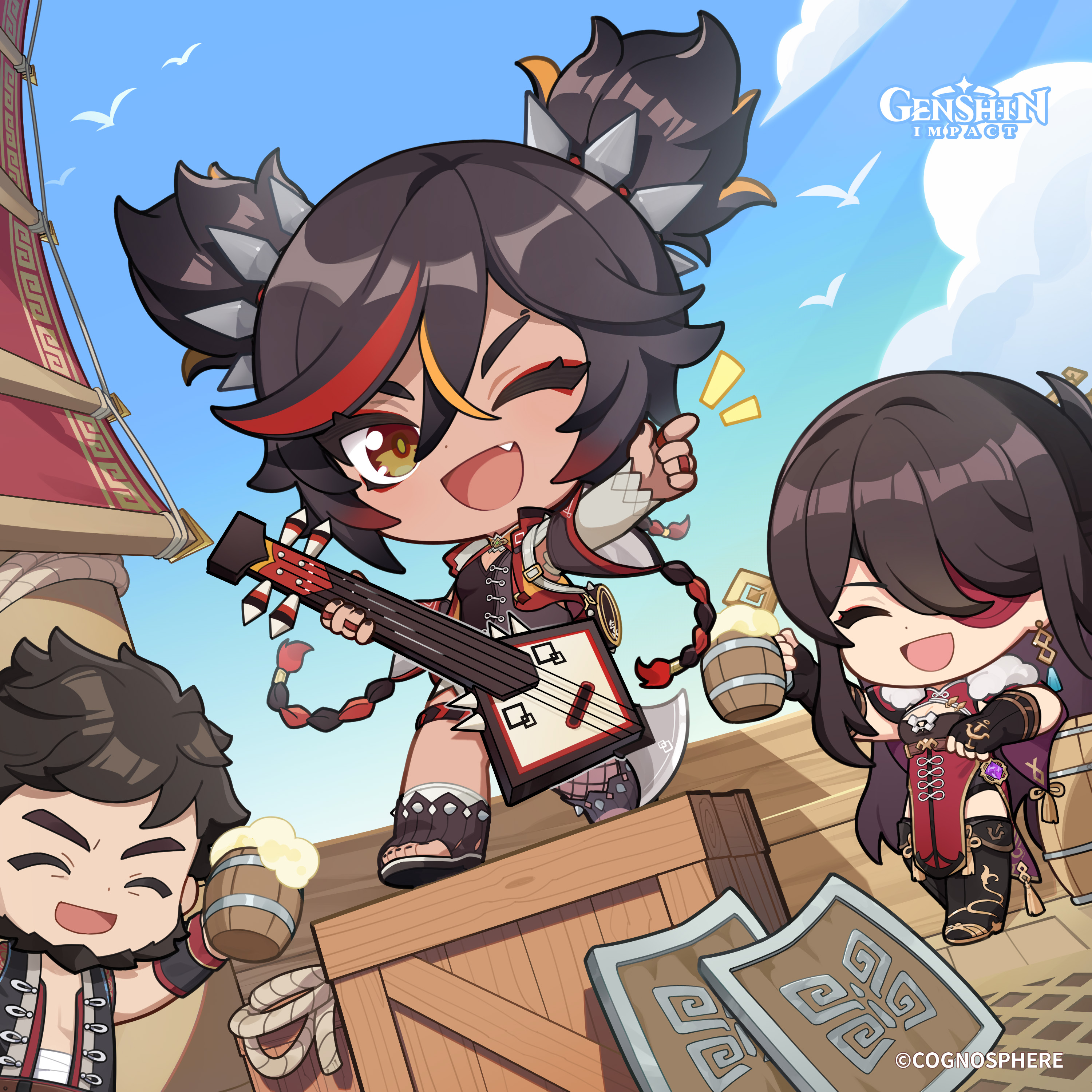 pixie (monster farm), suezo, line: monster farm, monster farm, official art, 1girl, cyclops, fur bikini, horns, monster disc, monster girl, one-eyed, tail, wings