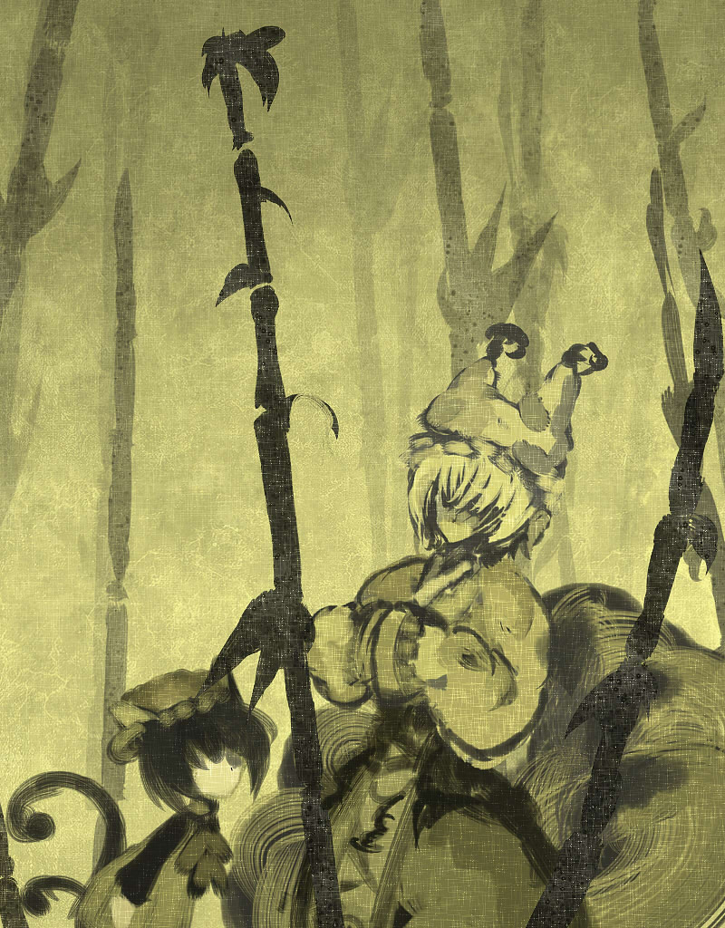sacha, yakumo ran, yakumo yukari, touhou, 2girls, animal ears, blonde hair, blood, female focus, folded fan, folding fan, fox ears, fox tail, gloves, hand fan, long hair, multiple girls, short hair, tail, torn clothes