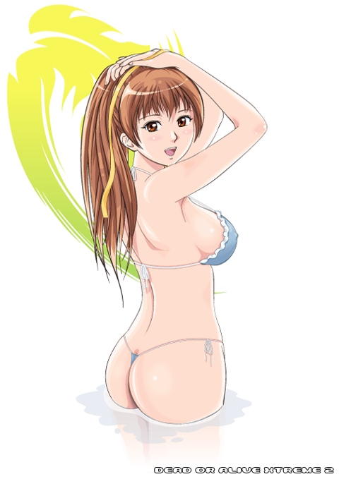 1girlarms upassbikinibrown eyesbrown hairbutt crackfemale focuslong hairmicro bikiniponytailsoloswimsuitthongthong bikiniwading