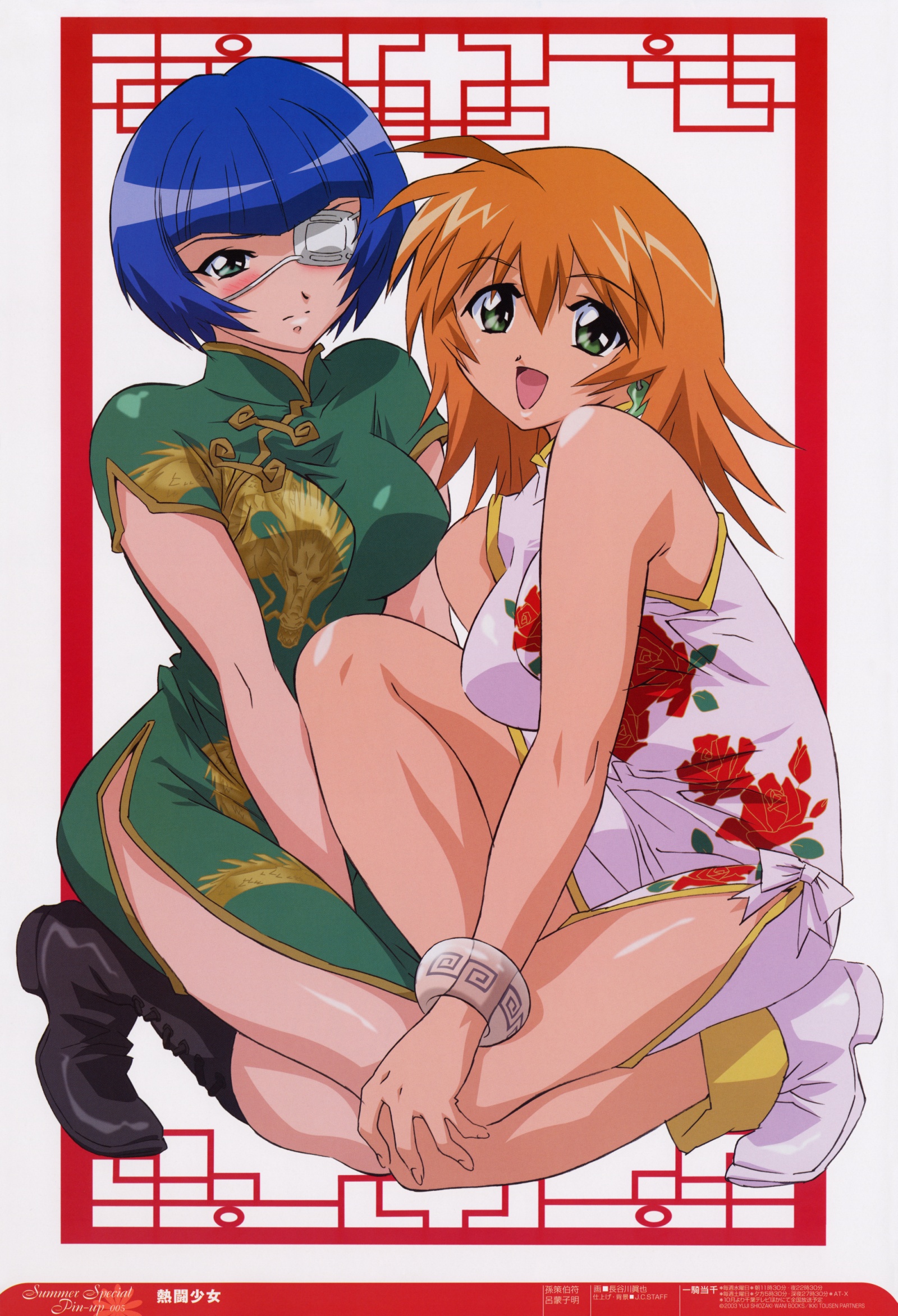 00s2girlsblonde hairblue hairblushchina dresschinese clothesdresseyepatchgreen eyesmultiple girls