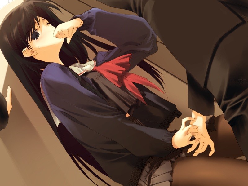 1girlbathroomblack eyesblack hairblue eyesfingeringlong hairone eye closedpantiespanties under pantyhosepantyhoseschool uniformsolo focusunderwearupskirtwink