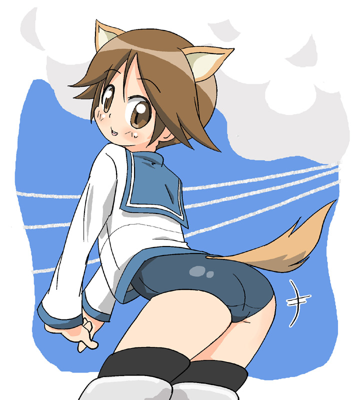 00s1girlanimal earsassbrown eyesbrown hairfemale focusfox earssailorschool uniformserafukushort hairsolostriker unitswimsuittail