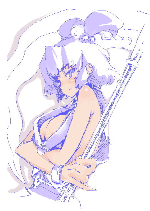 1girlbare shouldersbreastscleavagefemale focusjapanese clothesmedium breastsmonochromenipple slipnipplesoekakipinky outscythesolo