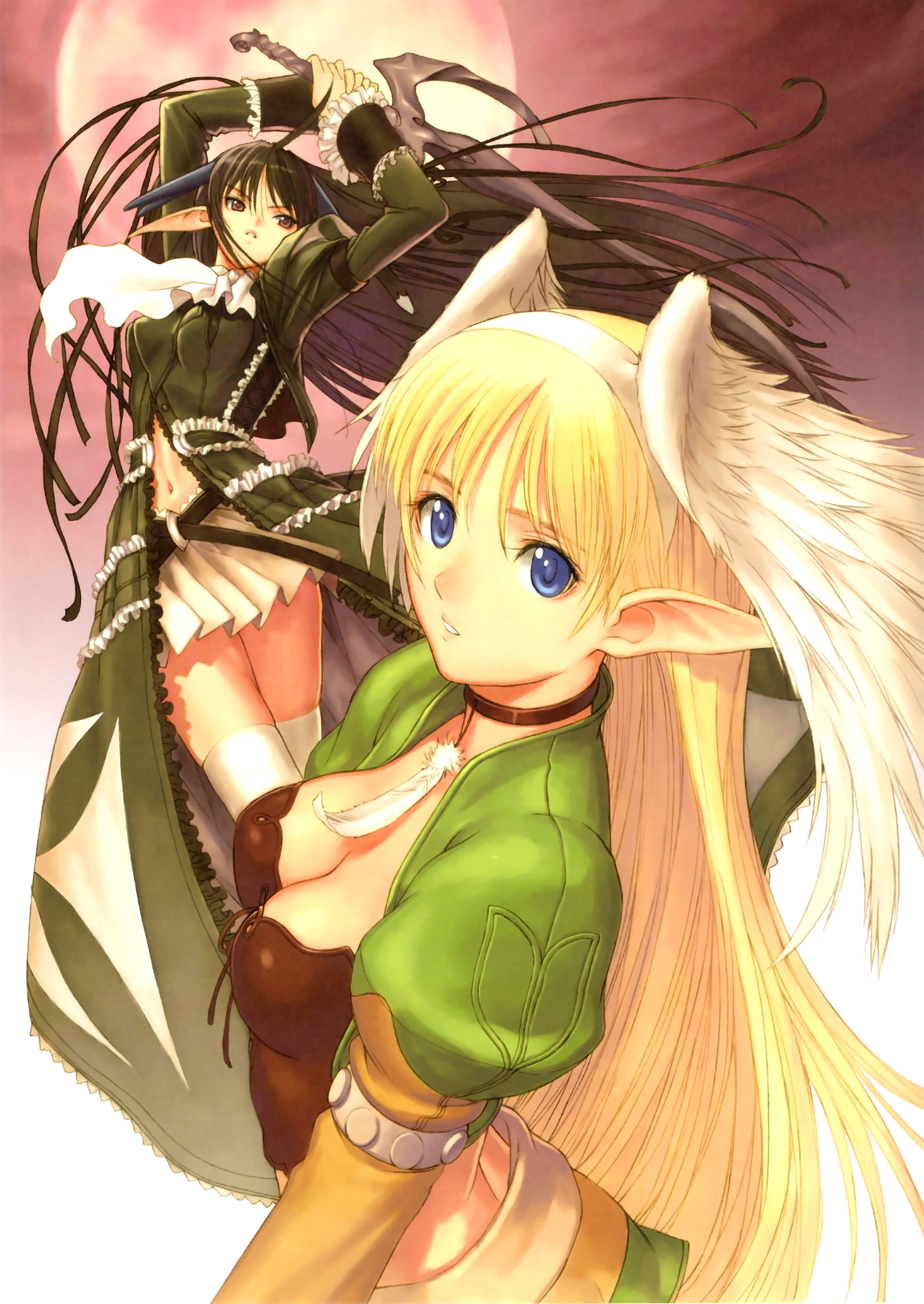 ofuro mantarou, kirisame marisa, touhou, bad id, bad pixiv id, 2girls, alternate color, blonde hair, braid, dark-skinned female, dark skin, dual persona, female focus, multiple girls, salute
