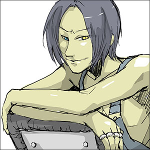 1boyblack hairchairheterochromialooking at viewermale focusoverallssimple backgroundsolowhite background