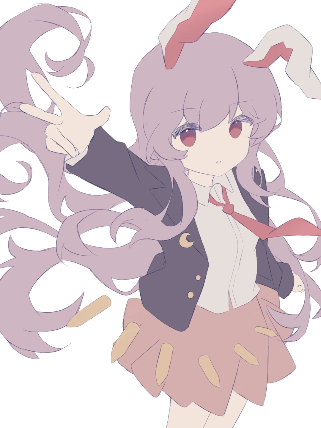 1girlanimal earsblushbreastslong hairmisakiiinecktieopen mouthpurple hairrabbit earsred eyesshirtskirtsolo