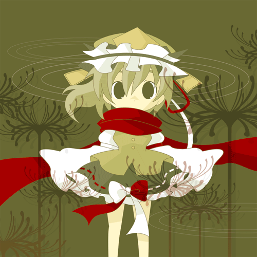 1girlasymmetrical clotheschibidressfemale focusflowergreen eyesgreen hairhatmatching hair/eyesred flowerribbonscarfshort hairsolospider lily