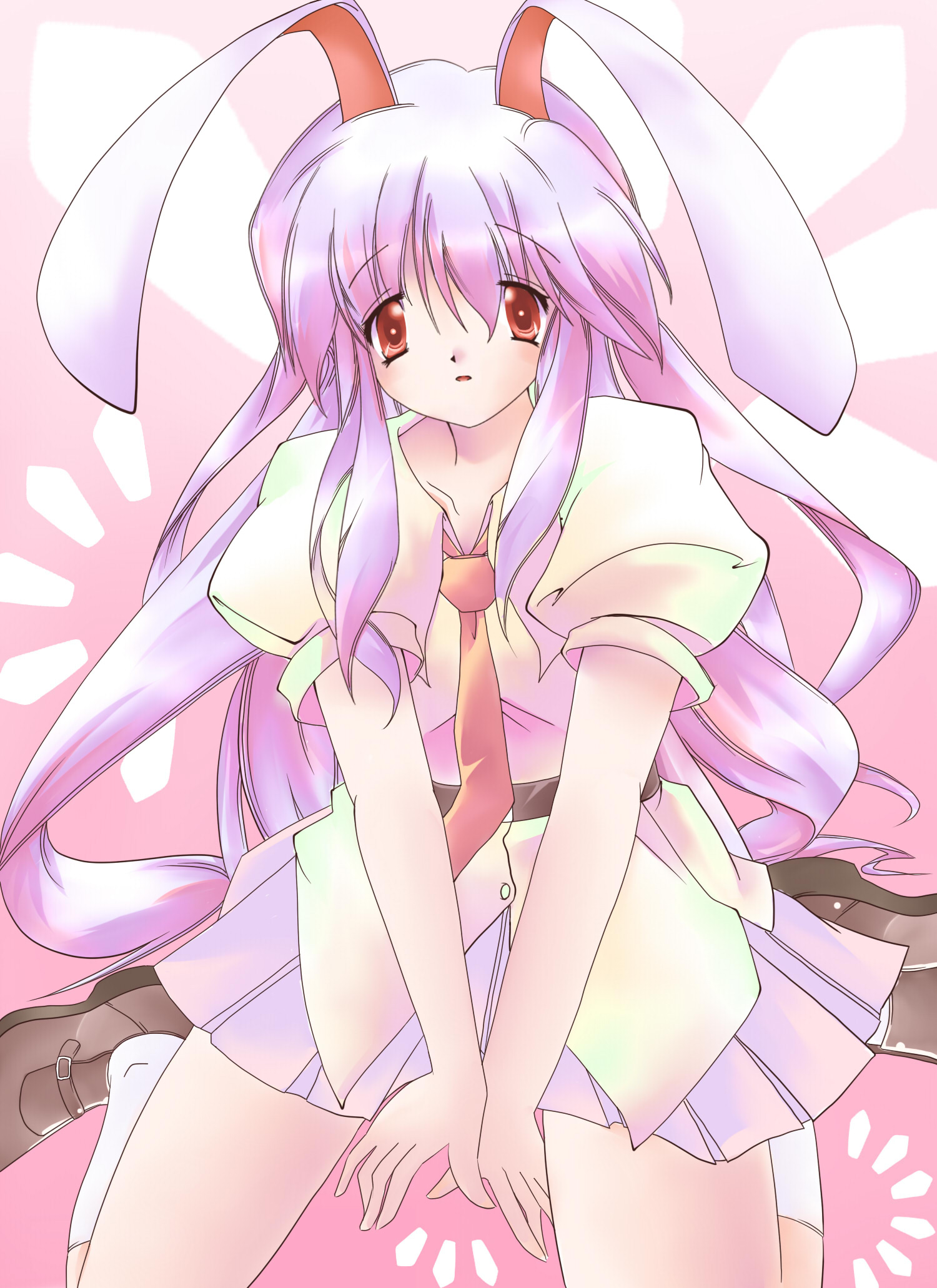 artist request, copyright request, 1girl, blush, collarbone, female focus, flat chest, legs up, loli, looking at viewer, lying, nipples, open mouth, panties, panty pull, pink hair, short hair, socks, solo, teeth, topless female, underwear, undressing, white background, white socks