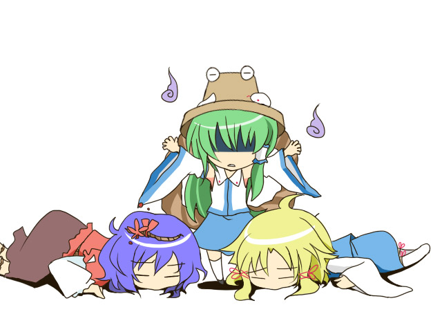 nishikiori jin, nishikiori kami, kooh (pangya), pangya, panties, solo, striped clothes, striped panties, striped thighhighs, tail, thighhighs, topless female, underwear