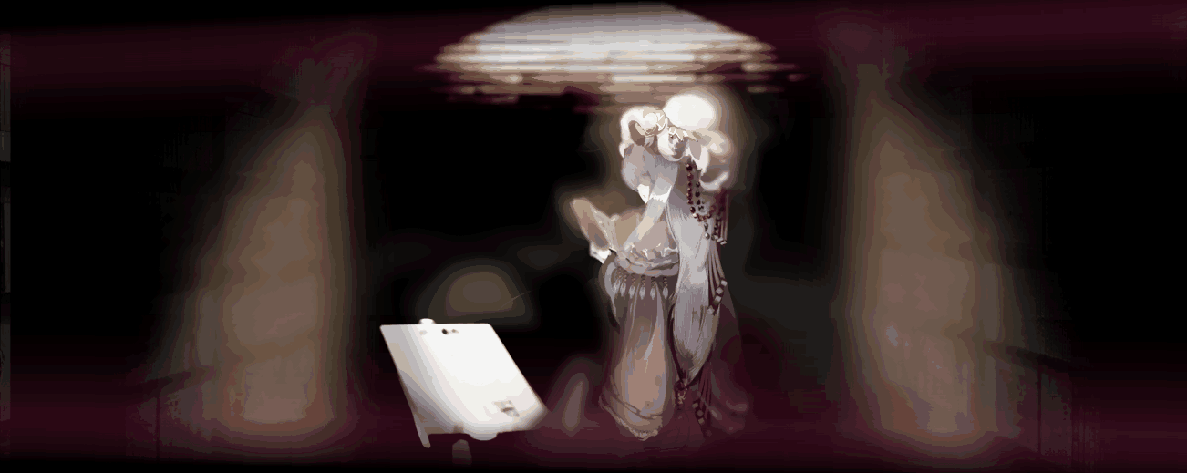 1girlbookcapeletcrescentcrescent hair ornamentdarkfemale focusfrom behindhair ornamenthatlong hairmob capopen bookreadingsolo