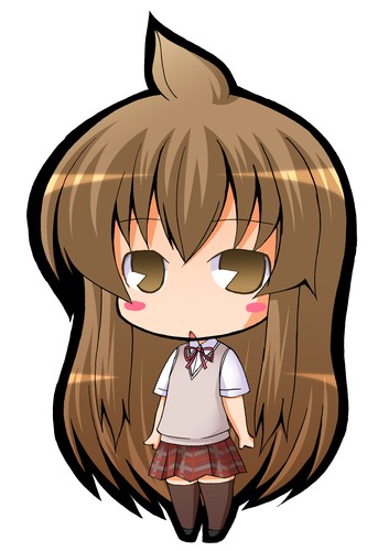 00sahogebrown eyesbrown hairchibilong hairpac-man eyesplaid clothesplaid skirtschool uniformskirtsolosweater vestthighhighsvery long hairvestzettai ryouiki