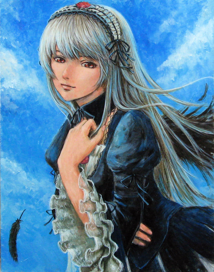 louise halevy, saji crossroad, code geass, gundam, gundam 00, derivative work, non-web source, asymmetrical wings, barefoot, blonde hair, brown eyes, brown hair, chain, closed eyes, hair ornament, hairclip, long hair, parody, ribbon, wings