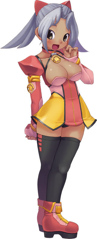 1girlblack thighhighsbootsbreastscleavagedark skindark-skinned femalefemale focusfull bodylarge breastsnipple slipnipplesopen mouthred bootssimple backgroundsolostandingstar (symbol)thighhighswhite backgroundzettai ryouiki