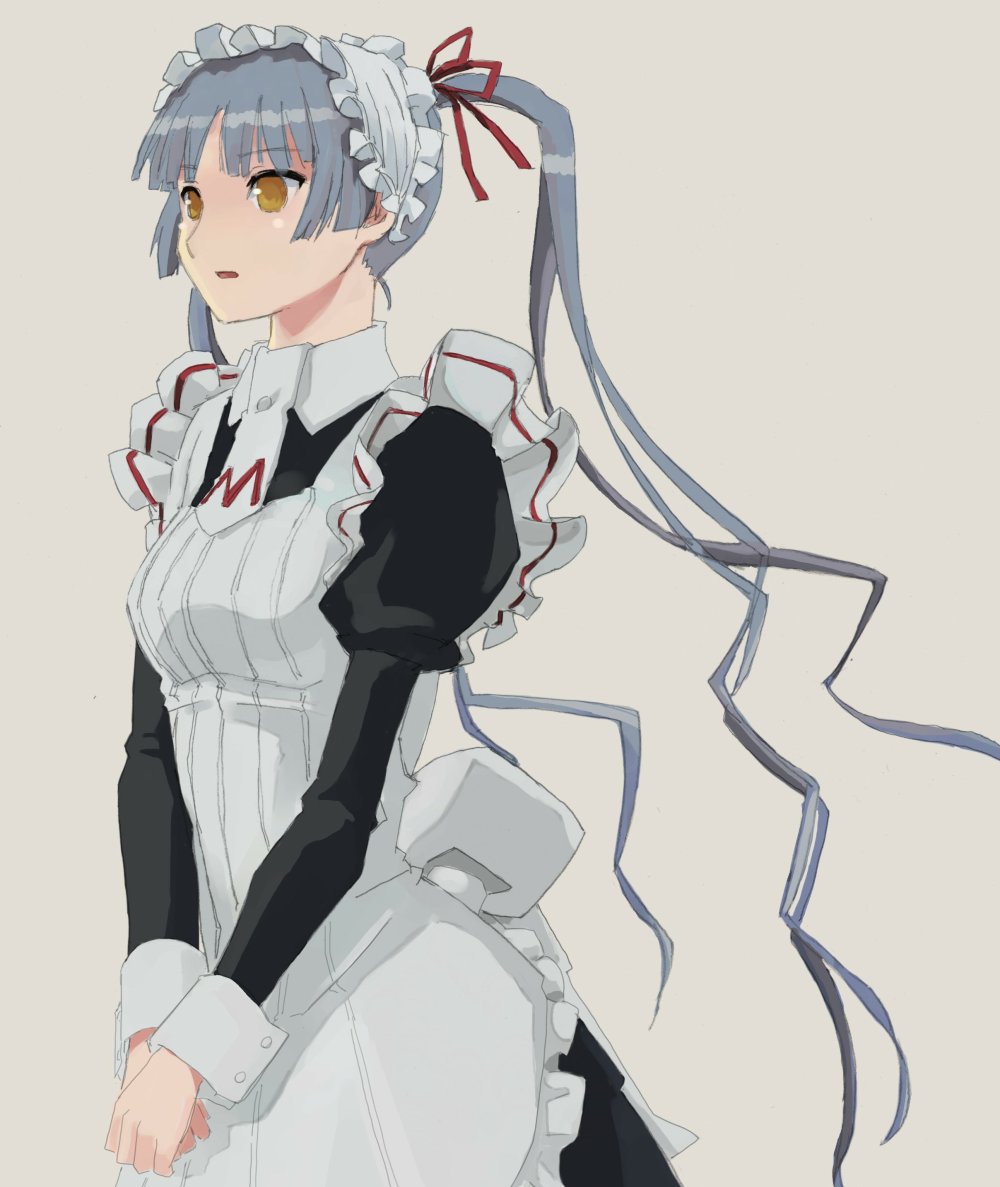 00sapronblue hairexpressionlesshair ribbonhairbandlacelong hairmaidmaid apronribbonsolotwintailsyellow eyes