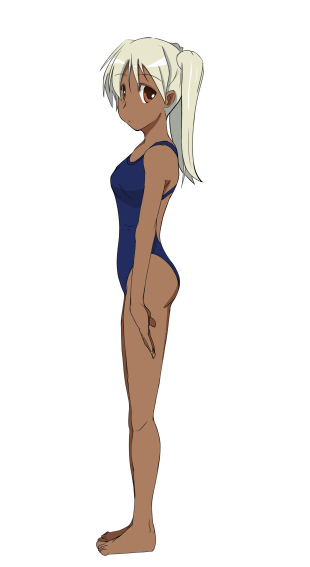 barefootbrown eyescompetition swimsuitdark skindark-skinned femaleone-piece swimsuitsoloswimsuittwintails