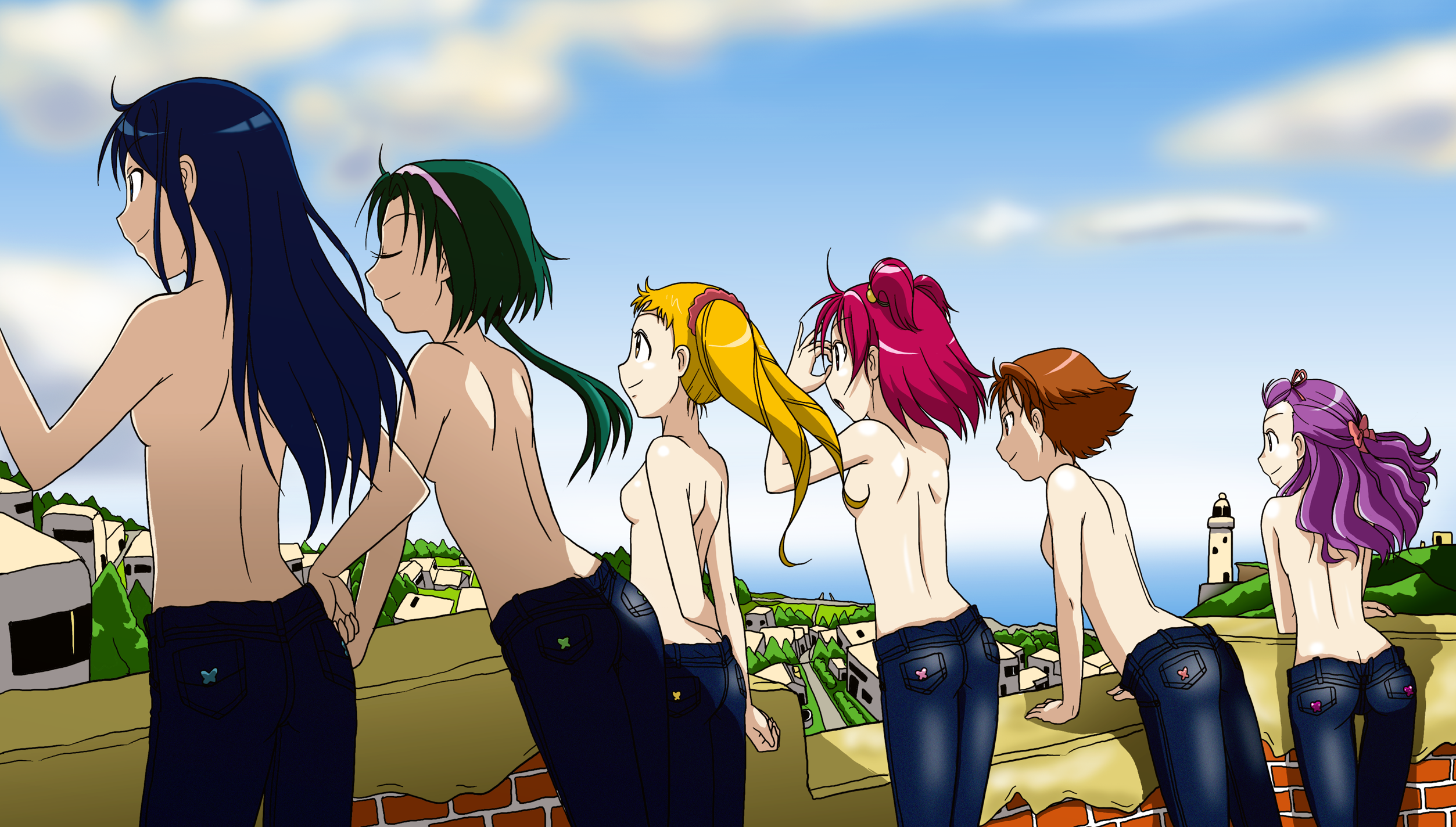 00s6+girlsarms behind backbackbare backbutt crackclouddaydenimeveryonejeansmultiple girlsoutdoorspantsskytopfreedomtopless femalezenra