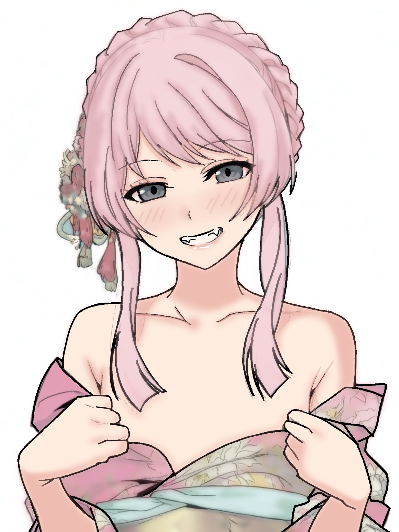 nazuna akaru, remilia scarlet, touhou, 1girl, fang, female focus, half-closed eyes, hat, mob cap, pink hat, ribbon, solo, wings