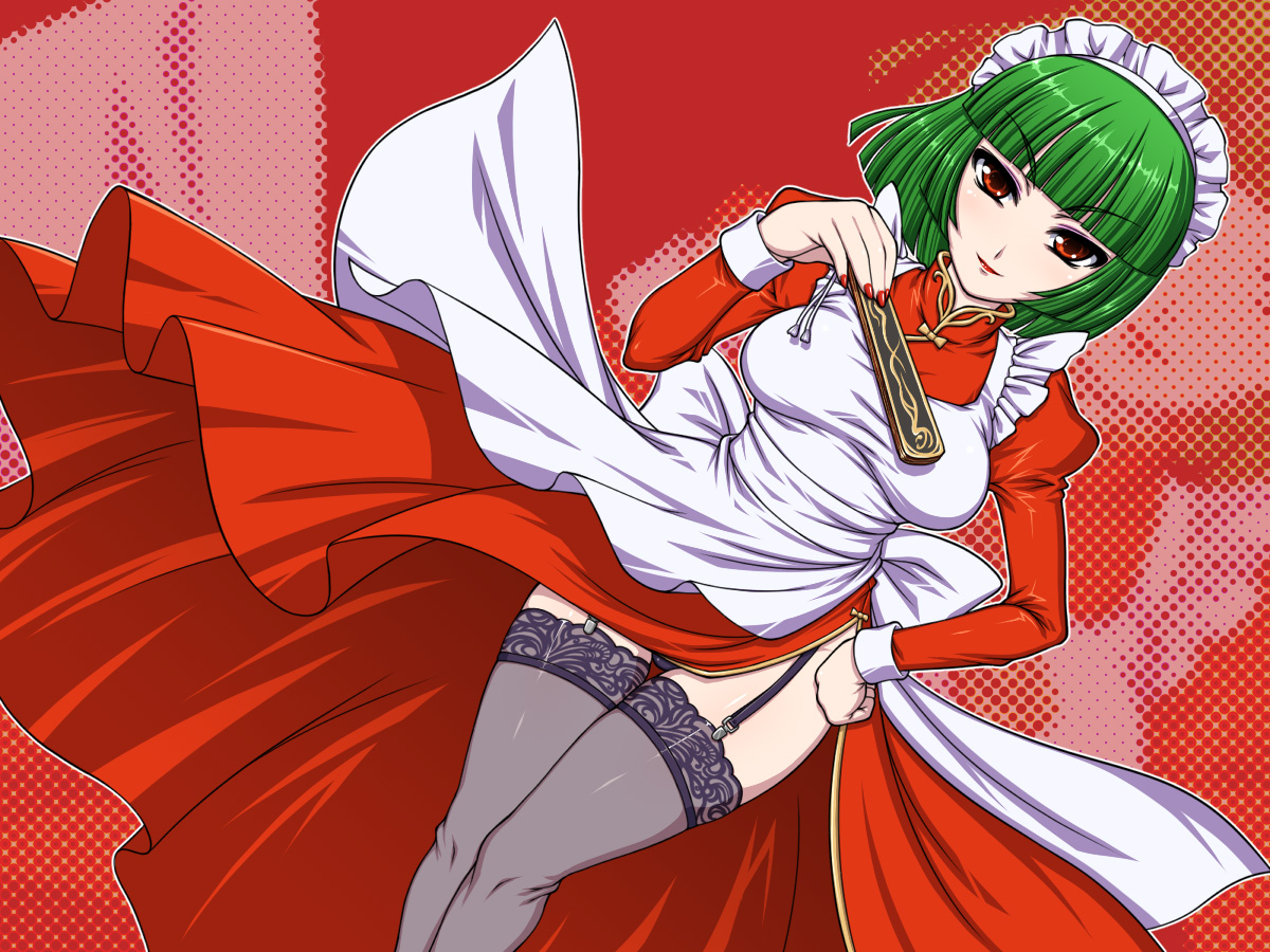 ham (points), kagiyama hina, touhou, bad id, bad pixiv id, 1girl, female focus, front ponytail, green hair, long hair, ribbon, solo