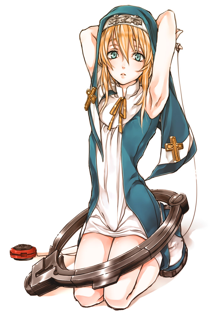 1boyarmpitsblonde hairblue eyescrosscrossdressingcrossdressing (mtf)cuffshandcuffshatmale focusnunribbonsittingsolotrapyo-yo