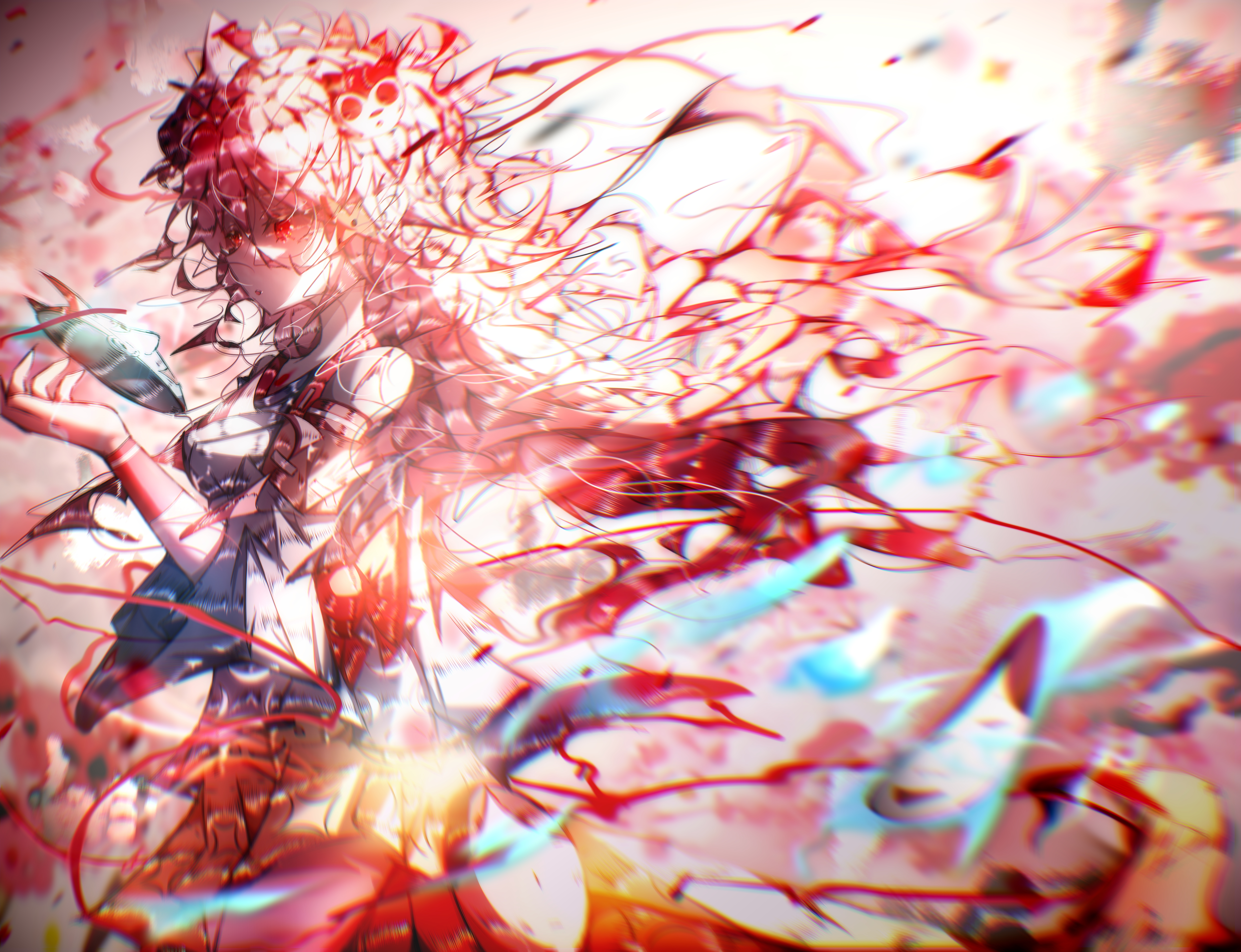 1girlblushbowbubble skirtexpressionlessfox maskhatlong hairlong sleevesmaskmask on headopen mouthpink eyespink hairplaid clothesplaid shirtshirtskirtsolovery long hair