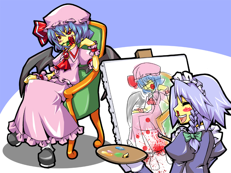 cad (caddo), kisaragi chihaya, idolmaster, highres, 1girl, apron, ball gag, bdsm, blue eyes, bondage, bound, bound arms, breasts, broken vase, gag, gagged, long hair, looking at viewer, maid apron, maid headdress, purple hair, restrained, sitting, small breasts, solo, very long hair, wariza