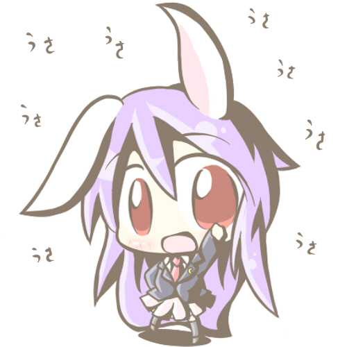 1girlanimal earsblazerfemale focusjacketlong hairnecktiepurple hairrabbit earsred eyessimple backgroundskirtsolothighhighsvery long hairwhite background