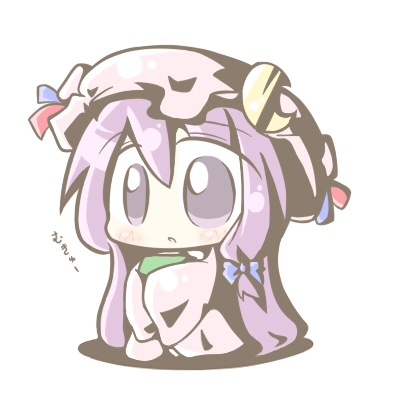 1girlbookchibicrescentcrescent hat ornamentfemale focusfull bodyhathat ornamentlong hairpurple eyespurple hairsimple backgroundsolovery long hair