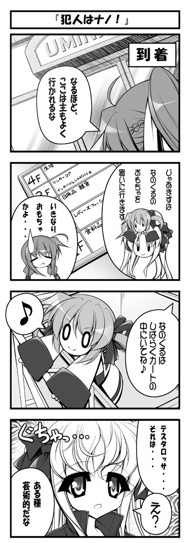 noya makoto, inaba tewi, reisen udongein inaba, touhou, check translation, translated, translation request, 4koma, animal ears, barefoot, comic, fang, female focus, hat, long hair, necktie, open mouth, party hat, purple hair, red eyes, tanabata, tears
