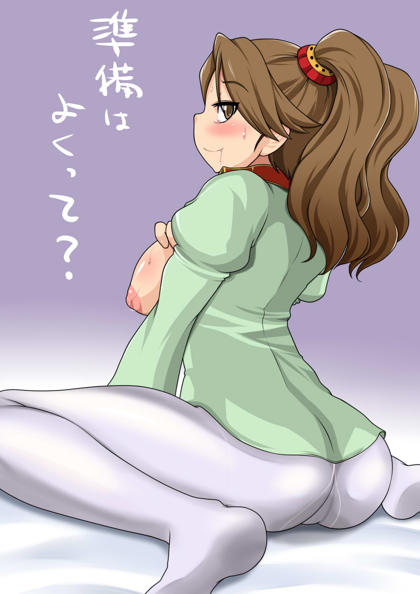 assblushbreastsbrown eyesbrown haircome hitherfemaleFlag for Deletionfrom behindlarge breastslong hairlooking at viewerlooking backnaughty facenipplespantyhosepuffy nipplespuffy sleevesseductive smilesittingsmilesolosweattearstied hairtwintailswariza