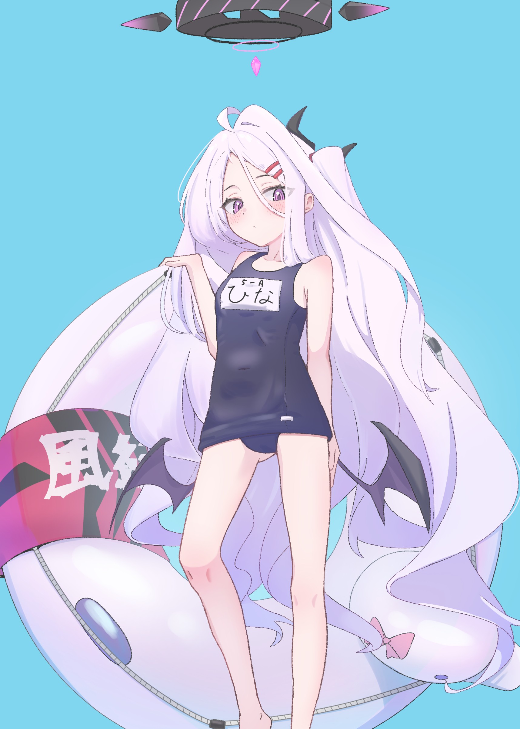 mudou eichi, shana, shakugan no shana, 00s, 1girl, bikini, black hair, blush, christmas, clitoris, clitoris slip, covered erect nipples, female focus, flat chest, hat, loli, long hair, pussy, pussy peek, santa hat, slingshot swimsuit, solo, string bikini, striped clothes, striped thighhighs, swimsuit, thighhighs