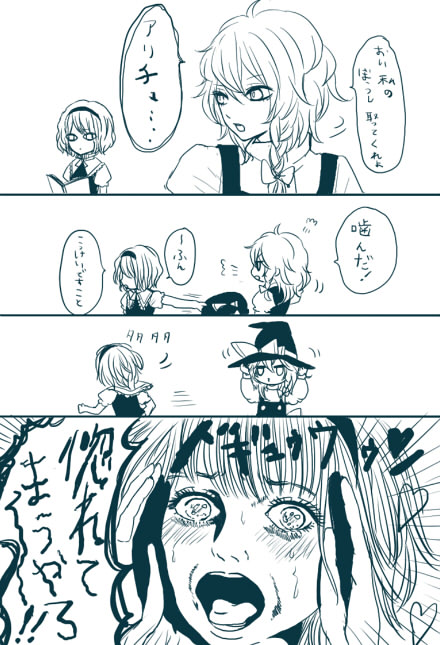 4komablushbookbowbraidcomicdressfemale focusgreyscalehairbandhatmonochromeopen mouthparodyribbonscreamingstyle parodywitch