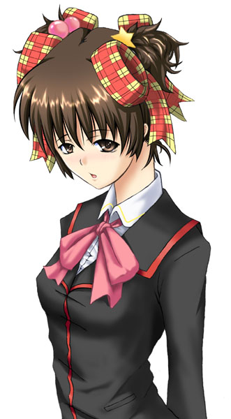 1boybowbowtiebrown haircrossdressingcrossdressing (mtf)hair ribbonlong sleevesmale focuspink bowpink bowtiered ribbonribbonschool uniformshort hairsimple backgroundsolotwintailswhite background
