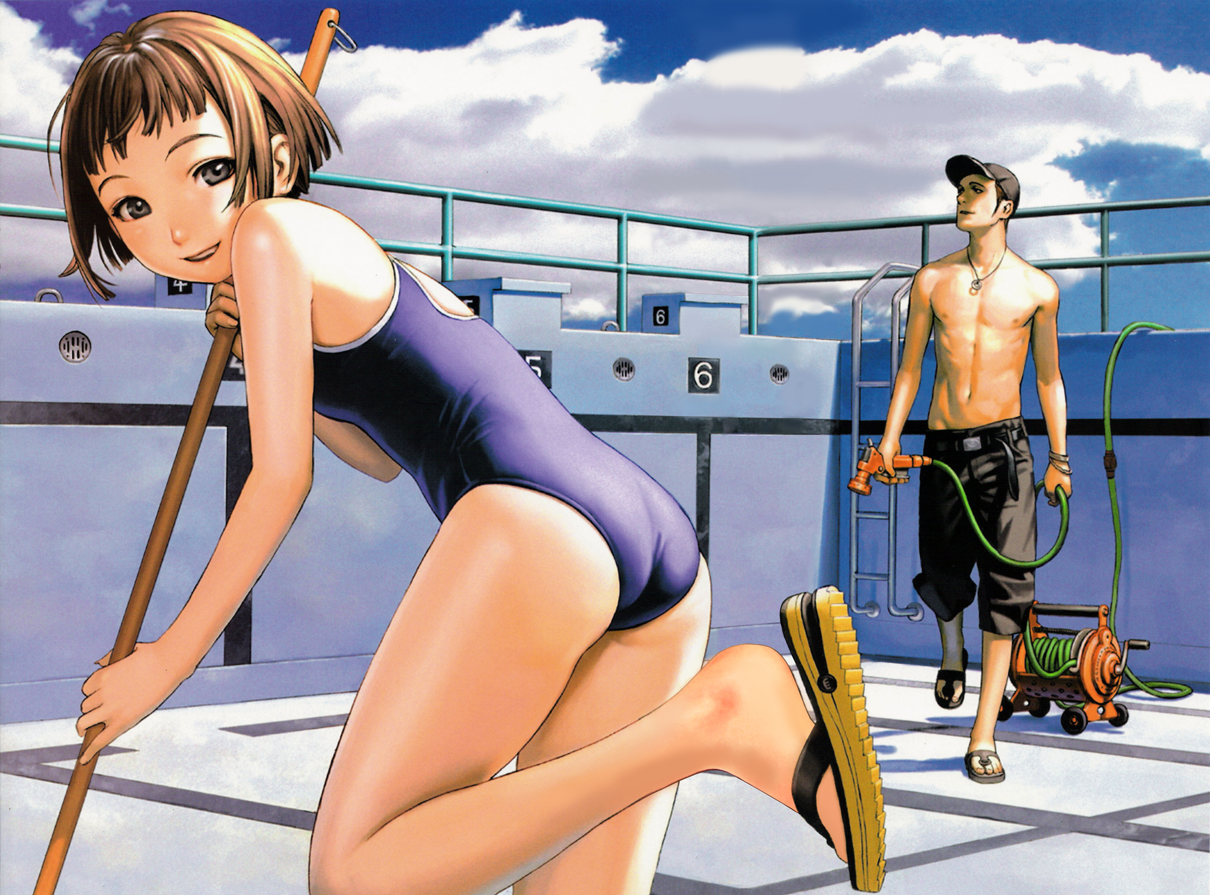 00s1boy1girlassbare shouldersbaseball capbeltblack eyesbob cutbreastsbrown haircleaningcloudcoupledayempty poolfeetflip-flopshatheterohosejewelrymopnecklaceone-piece swimsuitoutdoorspoolpool laddersandalsschool swimsuitshort hairskysmall breastssmileswimsuittopless male