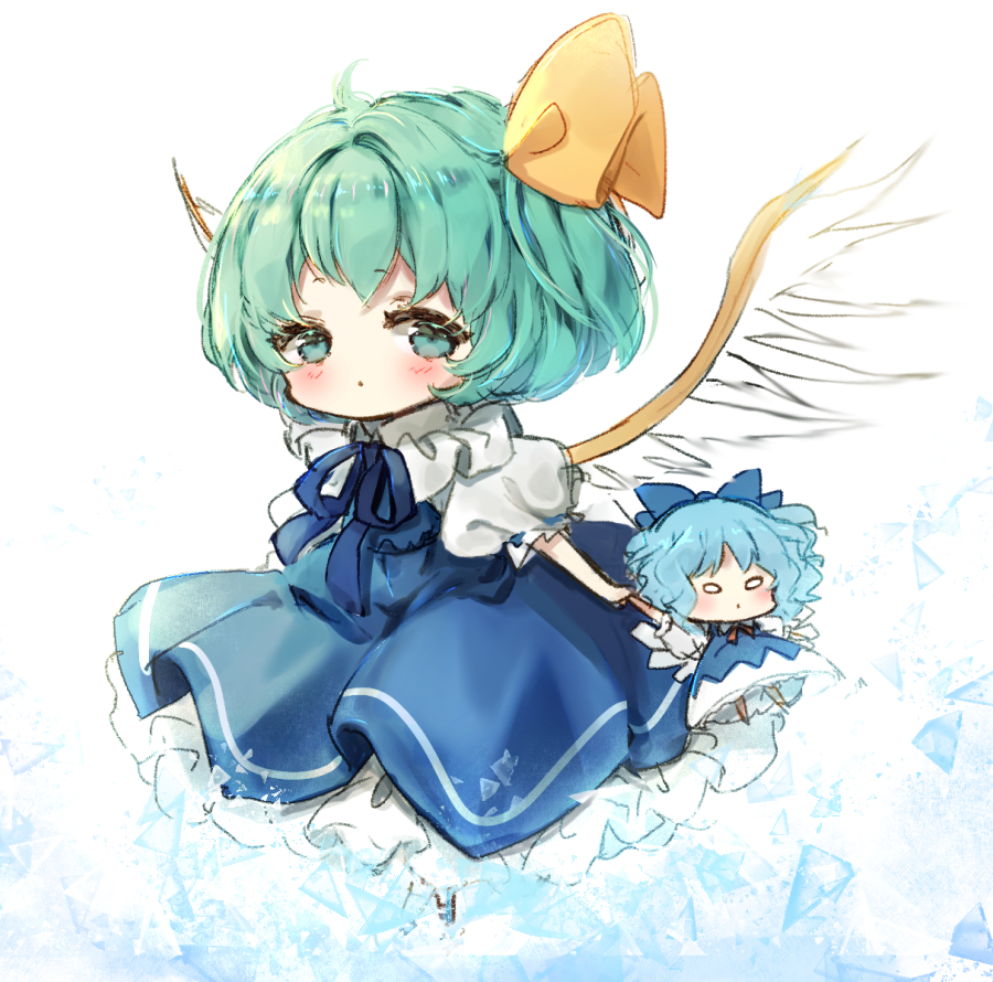 welt (kinsei koutenkyoku), infection monitor (arknights), suzuran (arknights), arknights, absurdres, commentary request, highres, 1girl, animal ears, bare shoulders, blonde hair, blue hairband, braid, dress, fox ears, fox girl, fox tail, frilled dress, frills, full body, hairband, looking at viewer, material growth, multiple tails, oripathy lesion (arknights), pantyhose, simple background, solo, tail, white background, white pantyhose