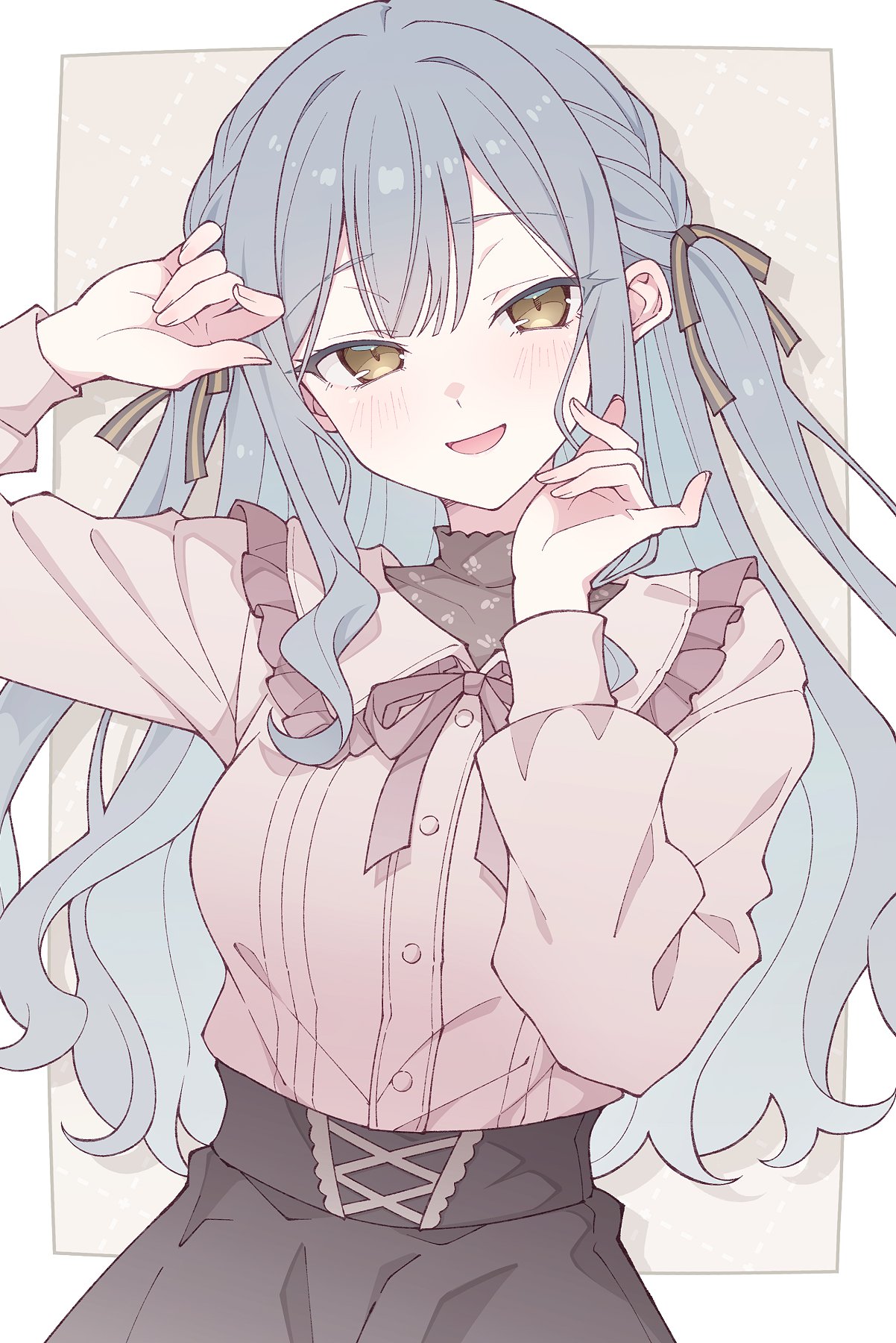 katsuragi ace (umamusume), mr. c.b. (umamusume), symboli rudolf (umamusume), umamusume, highres, animal ears, black hair, bow, brown hair, button gap, choker, ear covers, ear ornament, earrings, green shirt, hair between eyes, hair ornament, hairclip, hat, horse ears, horse girl, jewelry, long hair, long sleeves, medal, mini hat, mini top hat, multicolored hair, multiple girls, purple eyes, shirt, single earring, smile, strapless, strapless shirt, streaked hair, top hat, uri umu, white hair, yellow choker