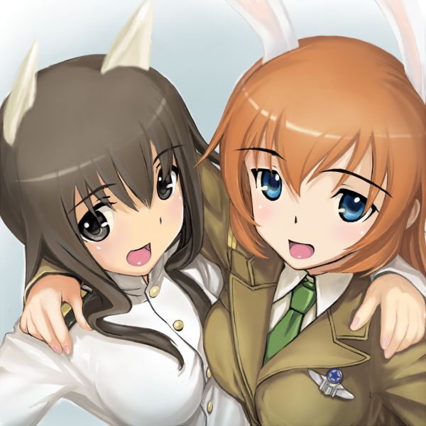 00s2girlsanimal earsblue eyesbrown eyesbrown hairlong hairmultiple girlsnecktierabbit earsrabbit girlwavy hair