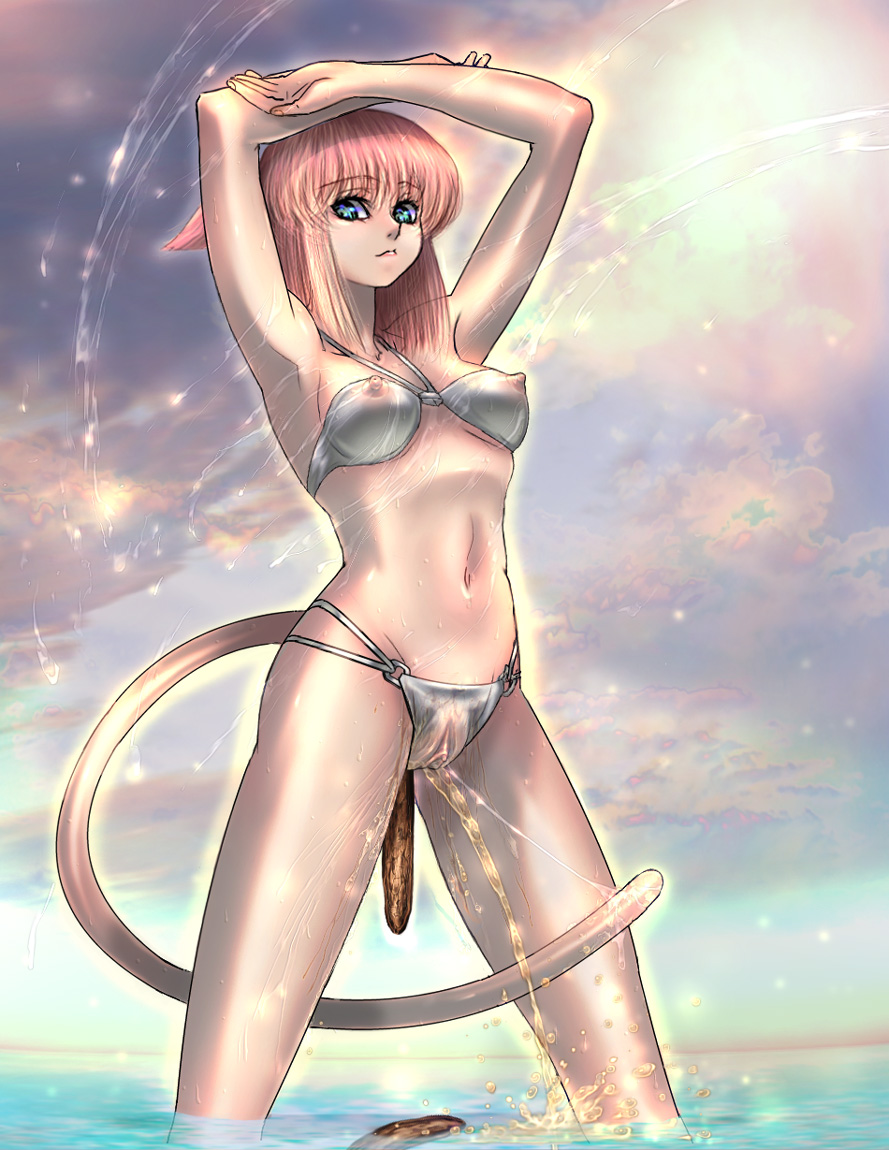 iizuki tasuku, kirihara mana, temptation, temptation h, game cg, third-party source, 1girl, bent over, breasts, brown eyes, female focus, hanging breasts, huge breasts, nipples, open clothes, open shirt, outdoors, pink eyes, pink hair, pussy juice, saliva, school uniform, serafuku, shirt, solo, tears, thighhighs