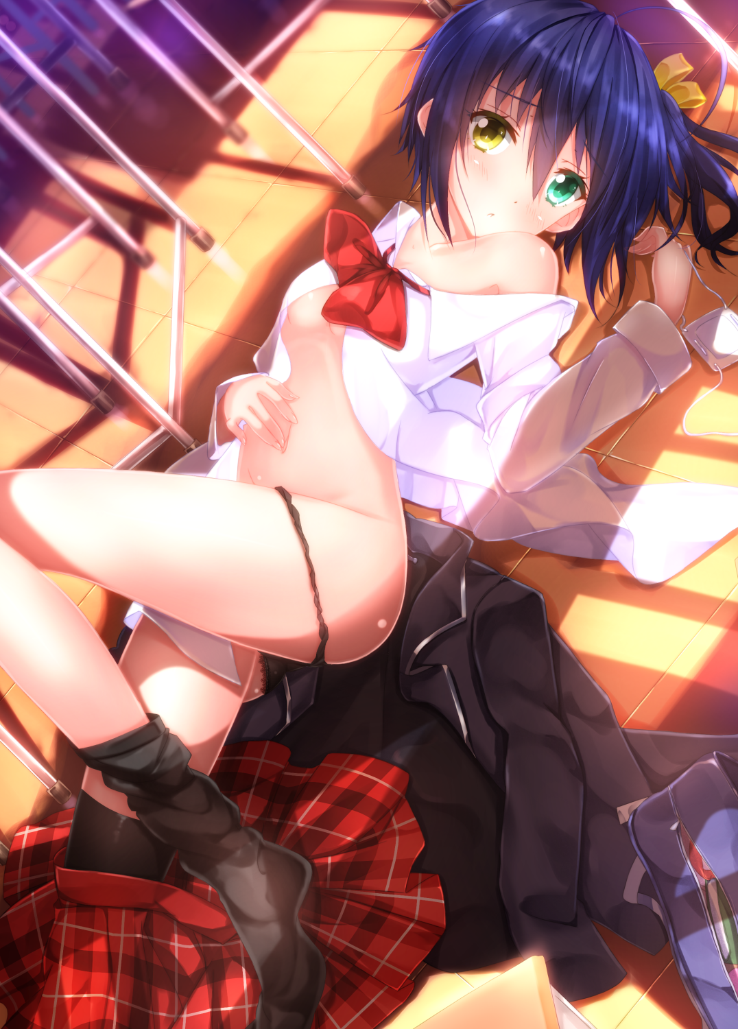 blushfemaleFlag for Deletionheterochromiano braopen clothesopen shirtpantiespanty pullplaid skirtschool uniformshort hairsolothighhighsunderwearundressing