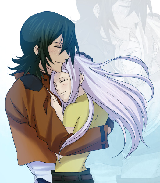 kiria miri, hisuian typhlosion, morty (academy) (pokemon), morty (pokemon), nintendo, pokemon, pokemon masters ex, highres, 1boy, blonde hair, chibi, fire, headband, looking at viewer, official alternate costume, pokemon (creature), purple eyes, purple fire, purple headband, purple scarf, scarf