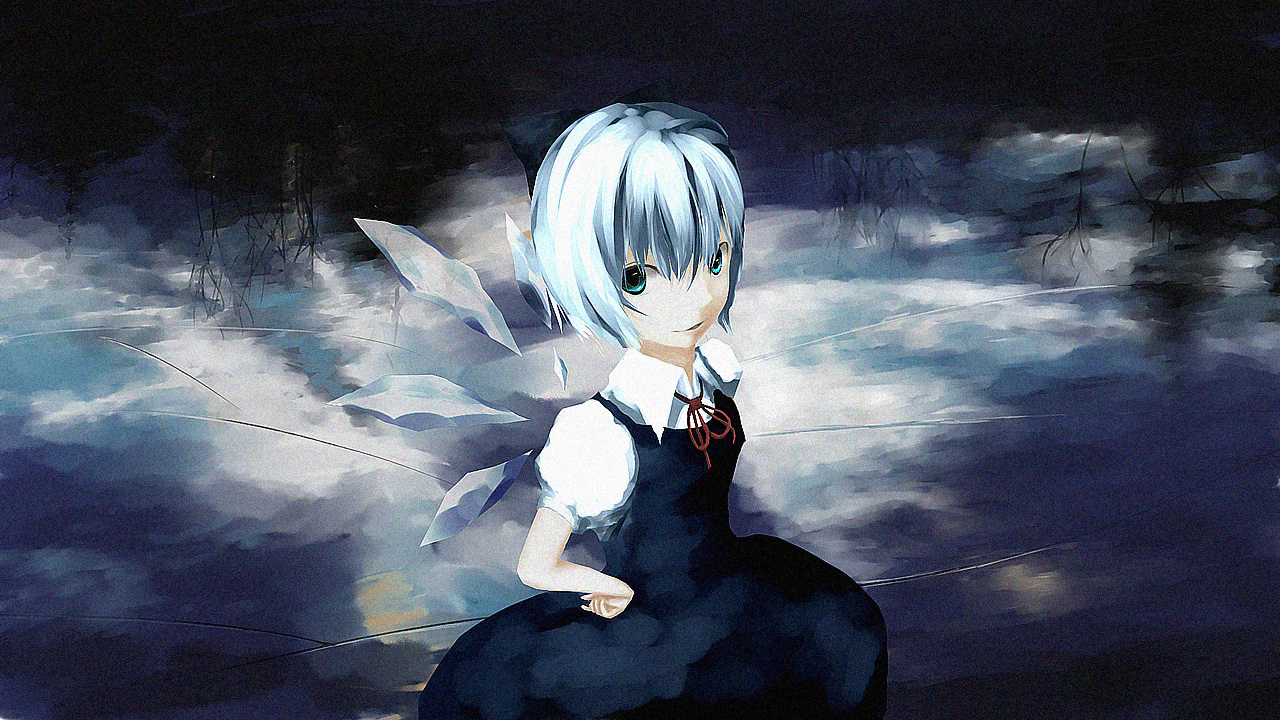 1girlaqua eyesblue dressblue eyesblue hairdressexpressionlessfairyfairy wingsfemale focushands on own hipsiceice wingslooking at viewermatching hair/eyespuffy short sleevespuffy sleevesshort sleevessolowings