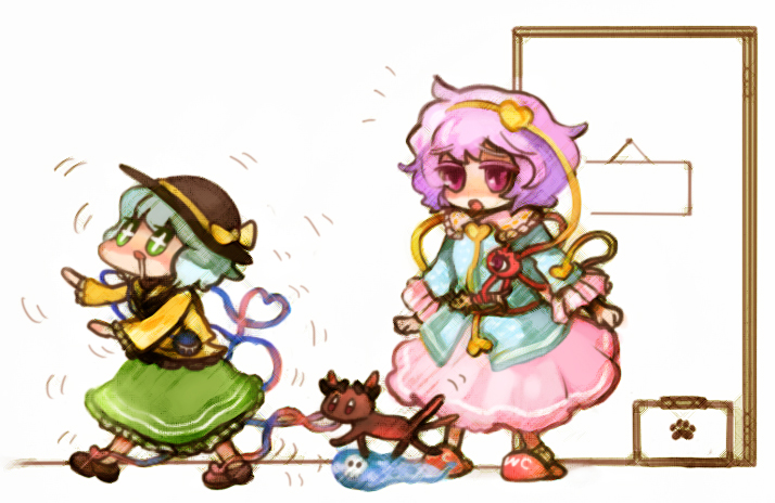 1boy2girlschibifemale focushatheartheart of stringmultiple girlspurple eyespurple hairshort hair