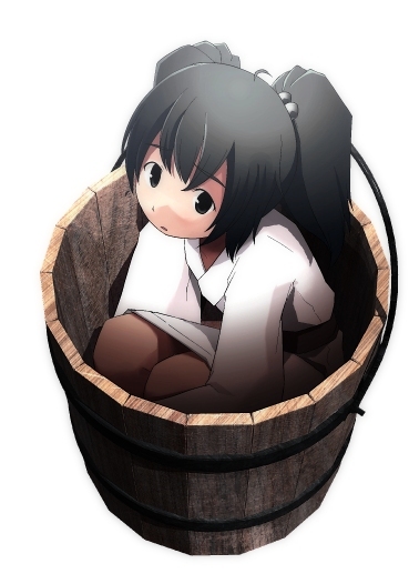 1girlahogeblack eyesblack hairbucketfemale focushair bobbleshair ornamentin bucketin containersimple backgroundsolotwintailswhite background