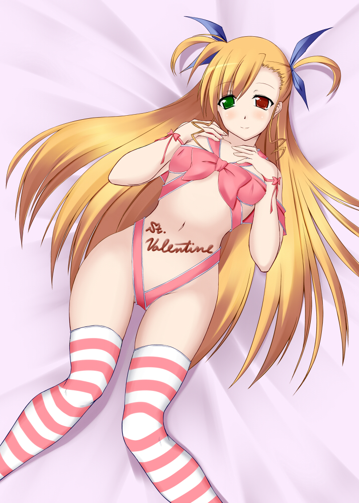 caryo, tabigarasu, darry adai, tengen toppa gurren lagann, 00s, 1girl, bodysuit, breasts, cleavage, crossed arms, female focus, long hair, lowleg, lowleg panties, medium breasts, panties, pink hair, ponytail, purple eyes, solo, sweatdrop, thighhighs, underwear