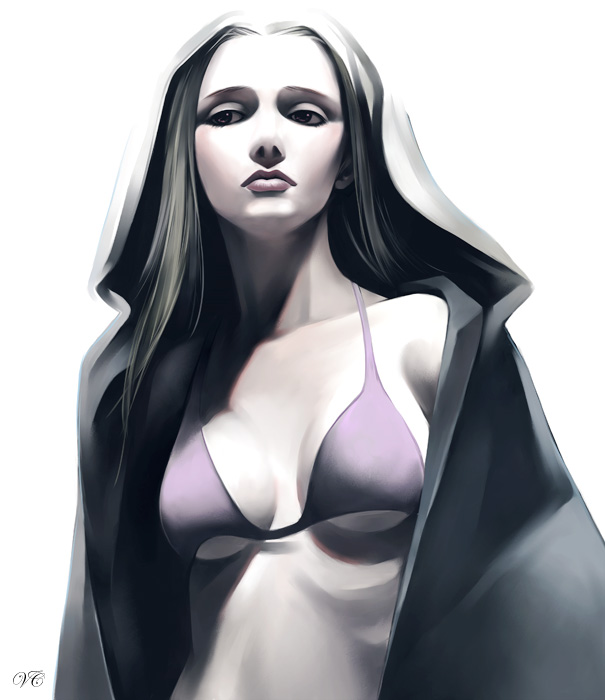 1girlbrabreastscleavagecolored skinfemale focuslingerielong hairmedium breastspale skinsolounderboobunderwearveilwhite skin