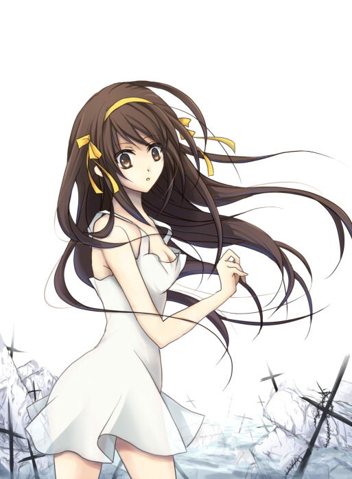 00s1girlbreastsbrown eyesbrown haircleavagedressfemale focusheadbandlong hairsee-through clothessolosundress