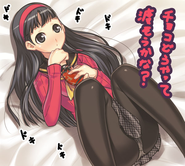 1girlblack eyesblack hairfemale focushairbandknees to chestpantiespanties under pantyhosepantyhosesolounderwearvalentine